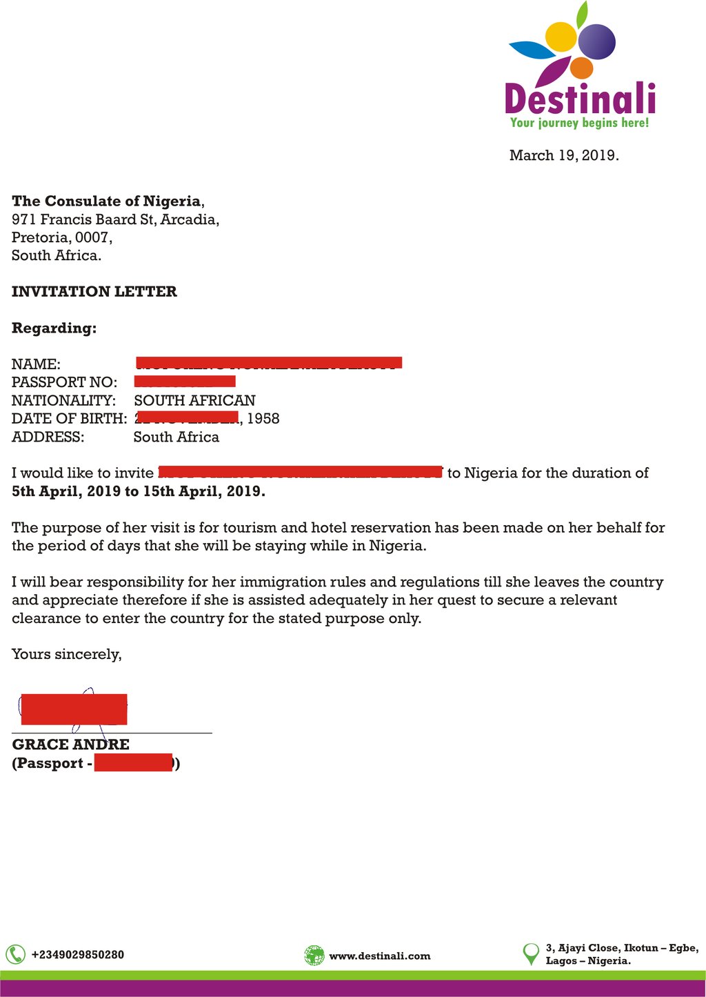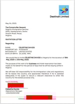 Letter of invitation to Nigeria, accepting full immigration responsibility for the period of your stay in Nigeria